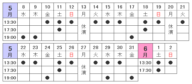 2013年5月8日(水)~6月2日(日) ※月曜休演