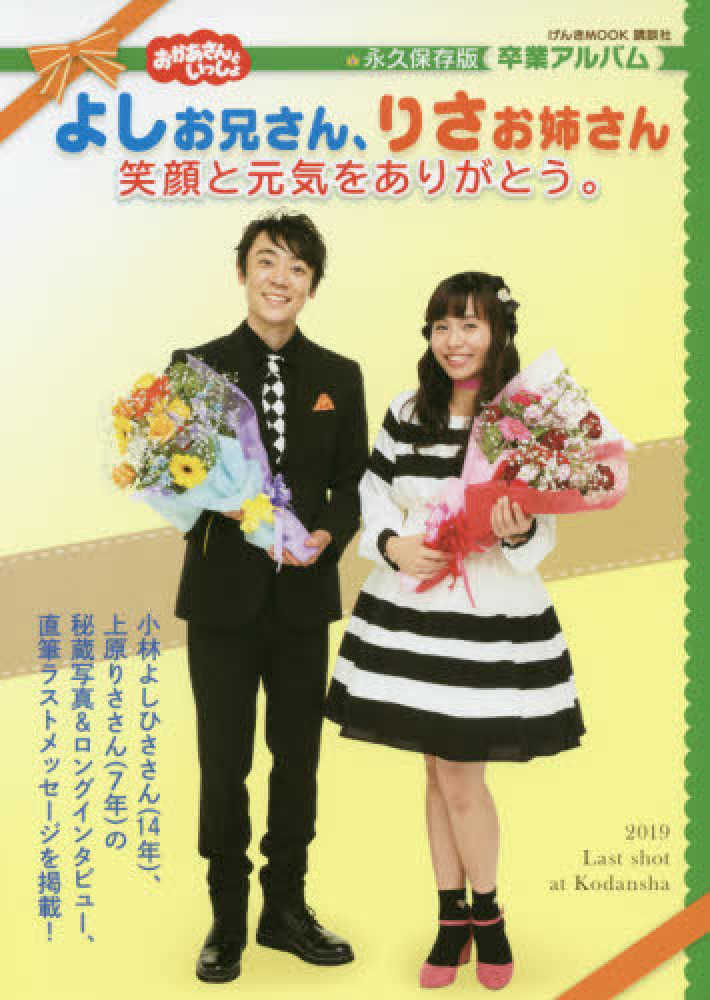 NHK Eテレの国民的幼児番組「おかあさんといっしょ」の体操のお兄さん、小林よしひささん、「パント!」のお姉さん、上原りささん。お二人が今年度をもって番組を卒業することになりました。その在任期間は、よしお兄さんが14年、りさお姉さんが7年に及びます。長きにわたって番組を支えてきたお二人の足跡と思いを綴った完全保存版の卒業記念ムックです。
