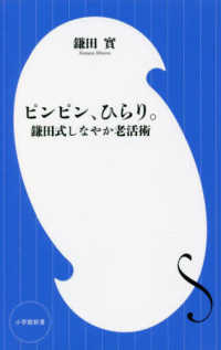 ついに我が身にも「老いるショック」がやってきた―。73歳の著者は、入院治療を体験したことがきっかけで「老い」をしっかりと生きていく覚悟を決めた。その生き方の極意こそ「ピンピン、ひらり」。老いの受け止め方や、元気な時間を延ばす生活習慣、老いの価値の見つけ方など、鎌田先生が人生の“下り坂”をしなやかに生きるための老活術を指南する。