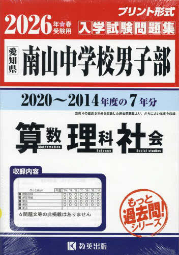 南山中学校(男子部)算数・理科・社会 〈2026年春受験用〉 - 愛知県