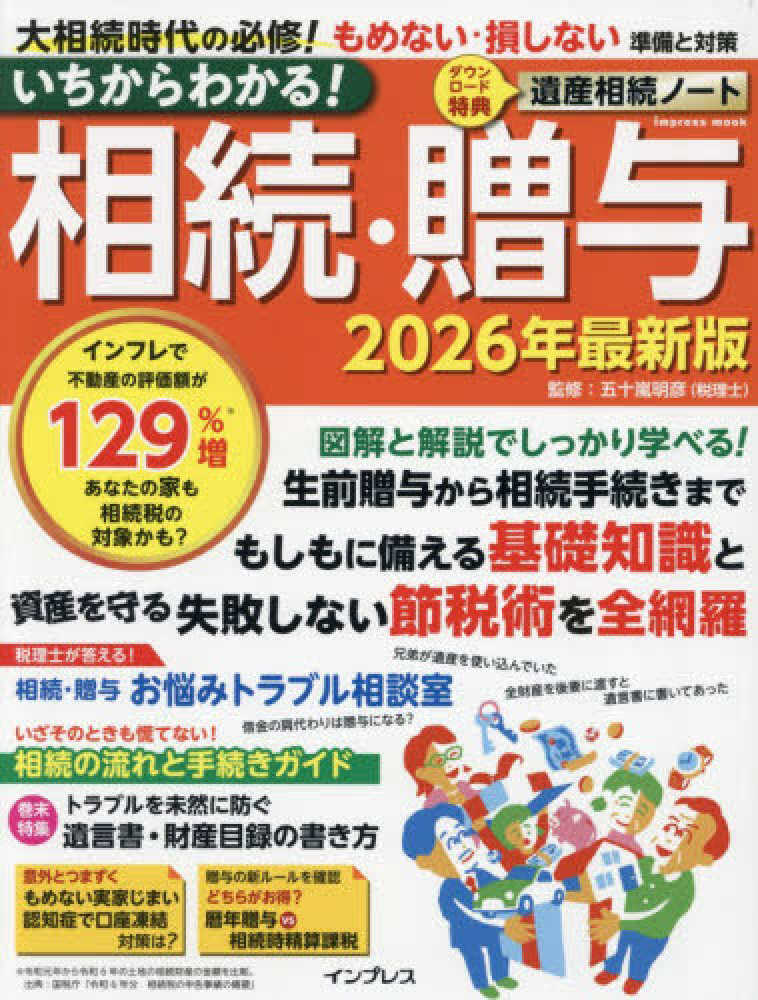 ★相続・贈与の基本・節税術が1冊でわかる!★本誌では「相続」「贈与」ごとに、「基本」と「節税対策」で章分けしているので、各制度の基礎知識から、事前対策が有効な節税テクニックまでわかりやすく学べます。相続では「相続の手続き」という章で、実際に相続発生時の対応もバッチリ! また、2024年から変わった「贈与」のルール変更についても巻頭で詳しく解説しています。ダウンロード特典「遺産相続ノート」や巻末特集「遺言書・財産目録の書き方」も掲載。相続・贈与の基礎知識から、知らないと損をする節税術まで、わかりやすくまとまった「相続・贈与」本の決定版です!