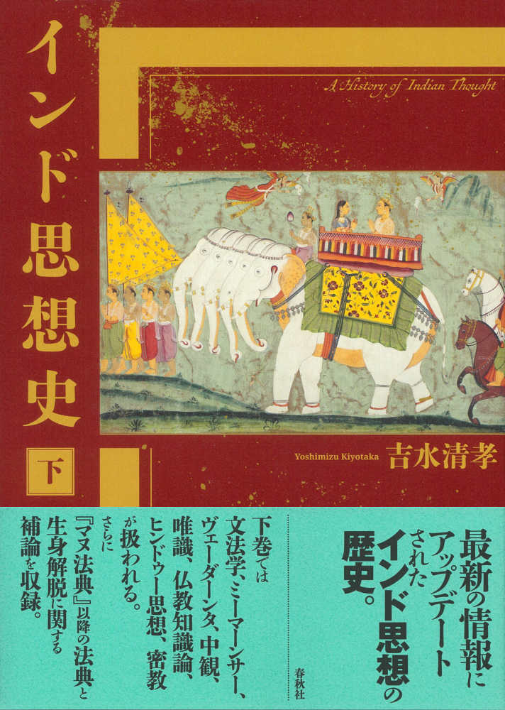 最新の研究成果を反映し、発展的な内容も収録したインド思想史の決定版。下巻では文法学・ミーマーンサー、ヴェーダーンタ、中観・唯識、仏教知識論、ヒンドゥー思想、密教が扱われる。さらに中世初期の法典と生身解脱に関する補論を収録。