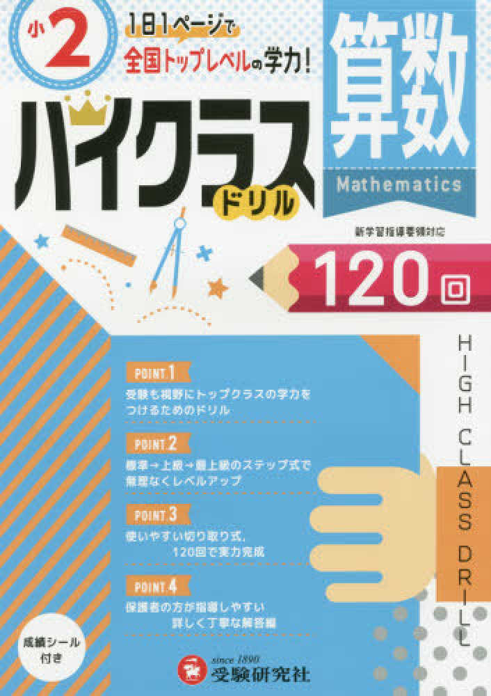 少しレベルの高い算数の問題に取り組める切り取り式のドリルです。3段階で,らくらくレベルアップができます。○小学2年生の学習内容に合計120回の問題で取り組みます。1回ごとの問題は,負担にならないように,短時間で取り組めるようにしました。
