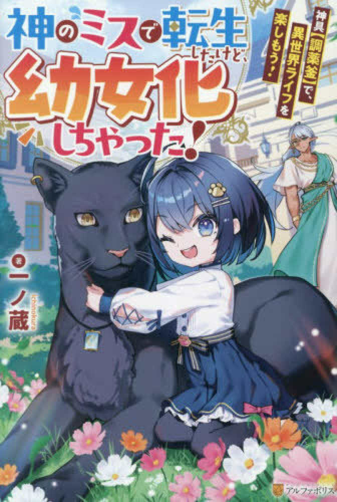 神様のせいで、4歳に若返って異世界に転生した32歳会社員の寺尾美桜。彼女は黒いピューマのジョウをお供に、自由気ままに生きていこうと思っていた。しかし、異世界は今、ポーション不足の真っ最中。みんなが困っているのを放っておけない!そこでミオは、神様から貰った神具【調薬釜】と加護を駆使し、周囲の人々の協力を得つつ、ポーションの大量生産に乗り出す―