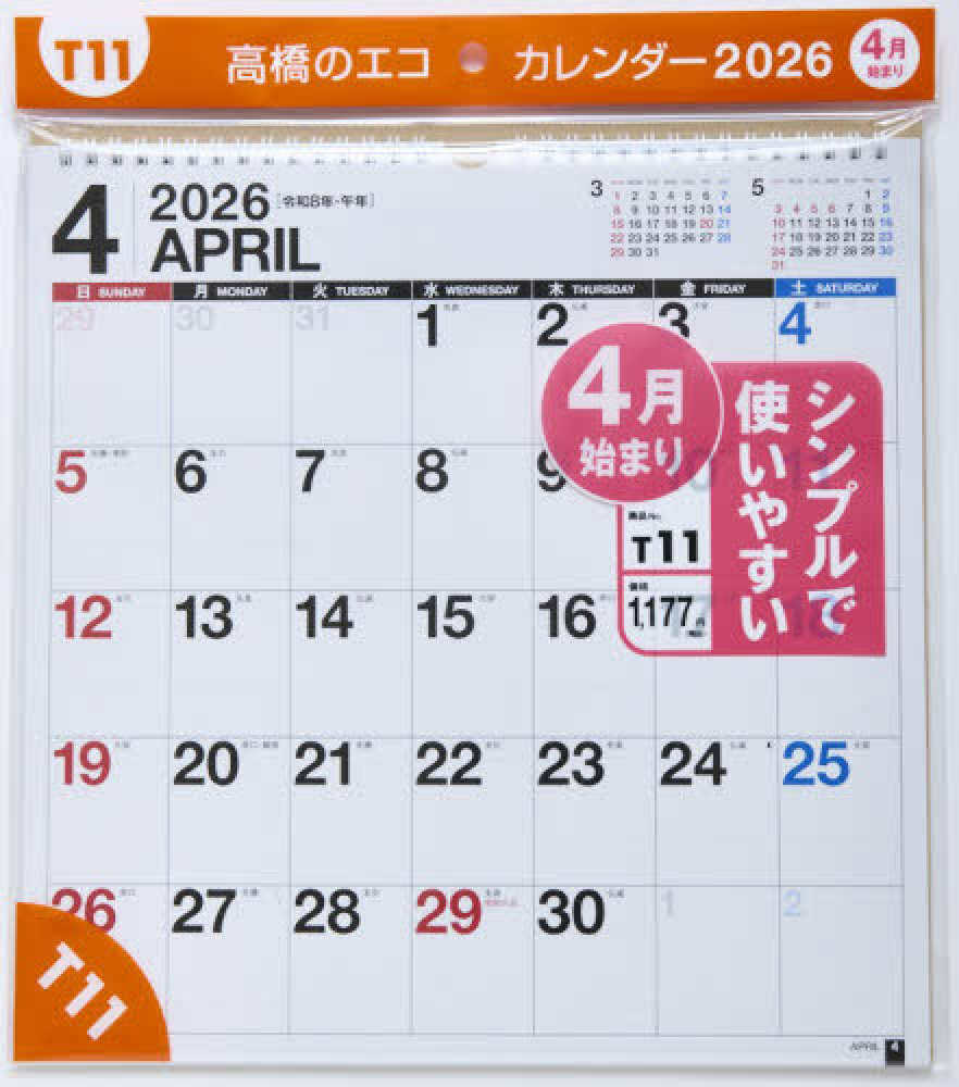 T11:エコカレンダー壁掛A3変型 〈2026〉