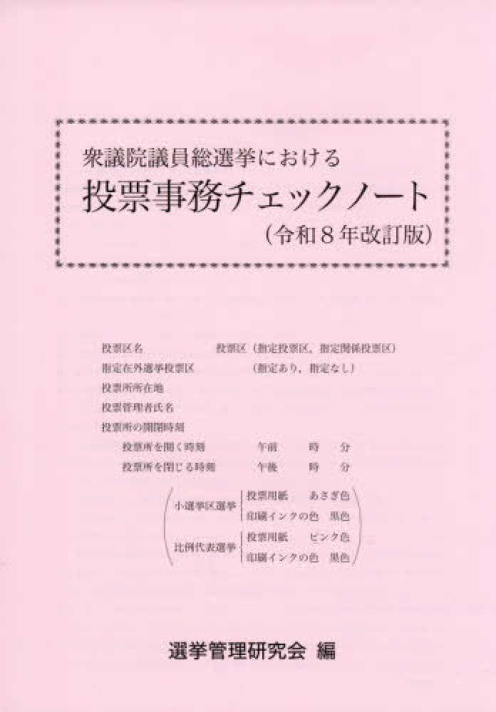 衆議院議員総選挙における投票事務チェックノート (令和8年改訂版)