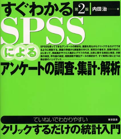 SPSSを使ってできるアンケートの解析を、画面を見ながらクリックするだけでできるように解説する。調査の準備から調査票の作り方、質問文の書き方、回答の形式にはじまって、単純集計やクロス集計とグラフの作成、比率に関する検定と推定、分割表の検定、平均値の検定、相関係数や順位データの解析まで、すぐ実用に役に立つ必携必読のハンドブック。