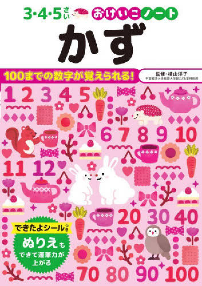 100までの数字が覚えられる!できたよシールつき。ぬりえもできて運筆力が上がる。