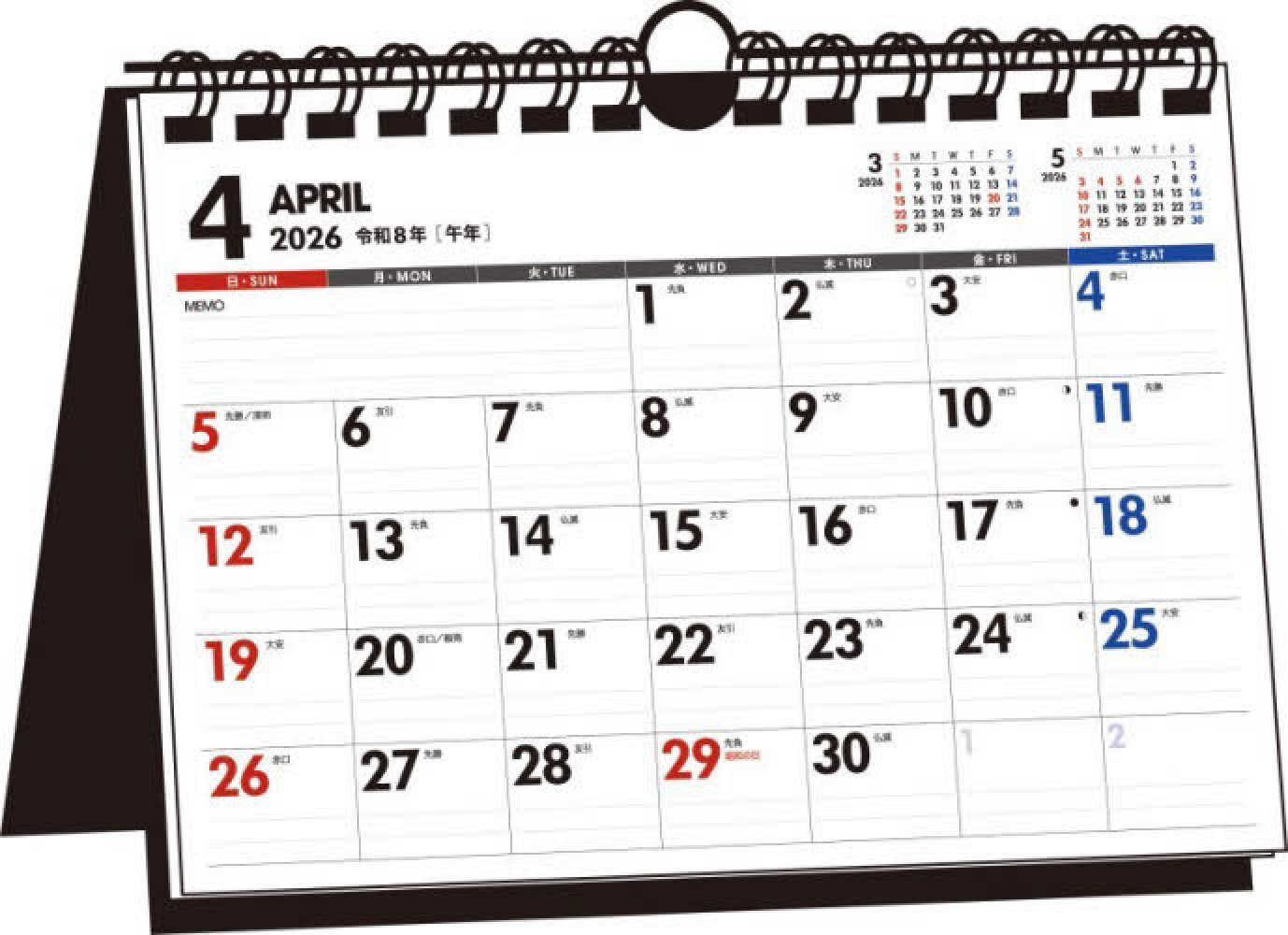 シンプル卓上カレンダー[卓上・壁掛け両用/A5ヨコ]【T19A】 〈2026年〉 - 2026年4月始まり