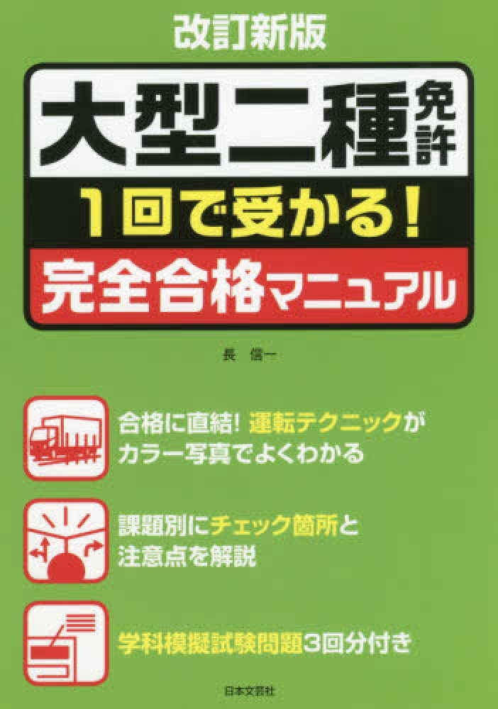 路線バス、観光バス等の運転に必要な大型二種免許。試験コース内の課題攻略のテクニックをカラー写真で紹介している。路線バス、観光バス等の運転に必要な大型二種免許。この本は、同免許の技能試験合格を目的に、試験コース内の課題攻略のテクニックをカラー写真で紹介している。2017年3月の改正道交法に完全対応。