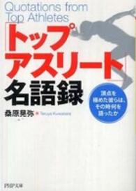 イチロー、谷亮子、北島康介、マイケル・ジョーダン…。彼らが放つ独創的な言葉の数々は、プレー同様、我々を魅了してやまない。本書は、古今東西のトップアスリートや指導者248人の中から、歴史に刻まれた306の名言を紹介し、解説を加えた。「私の頭でなく、自分の頭で考えなければならない」(イビチャ・オシム)など、スポーツの名言から「人生とビジネス」のヒントを学ぶ。