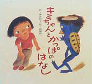 ヨコハマのはしけの夕ぐれ。 運河につながれた船の上で、キミちゃんがムクをだいてあそんでいると、水の中からかっぱがでてきました。