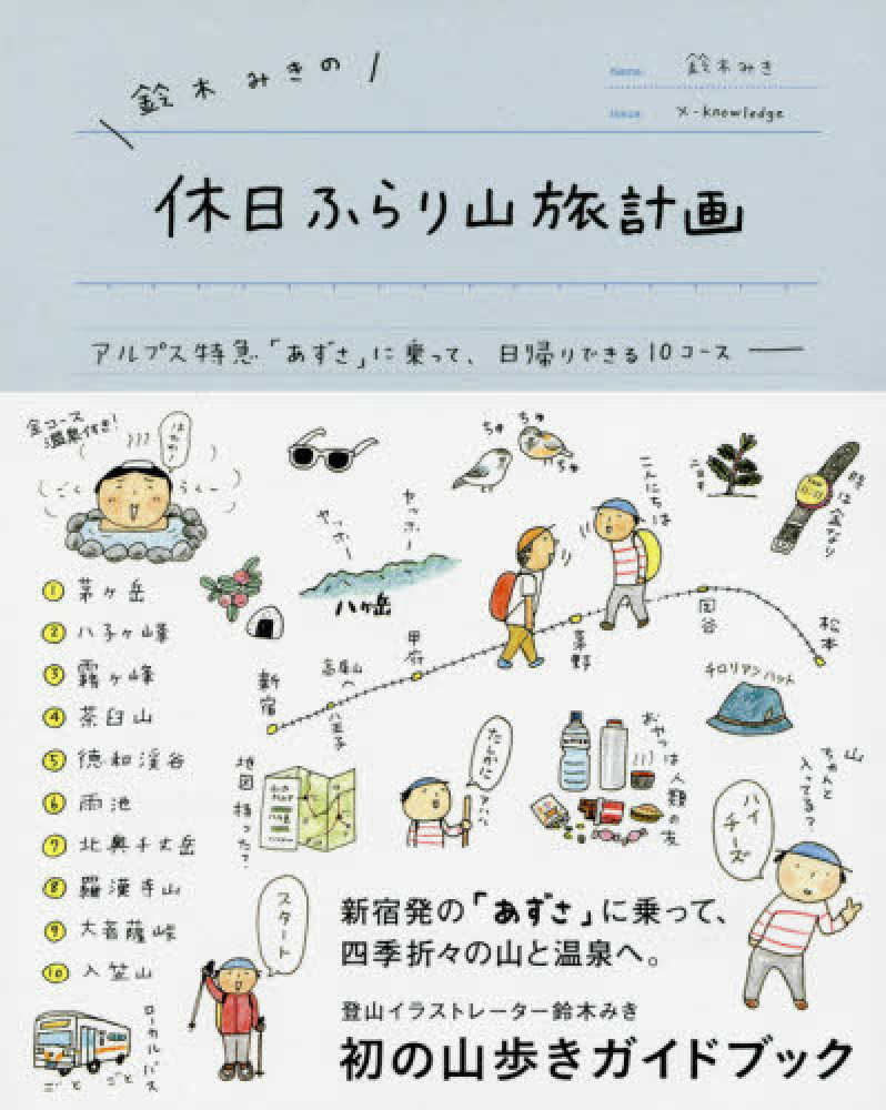 元祖・山ガールの鈴木みきさんによる「東京から日帰りで行ける」初心者にも嬉しい手軽な山ガイド。本書では新宿始発「特急あずさ」を利用して、日帰りで行ける登山ルート10コースを紹介します!