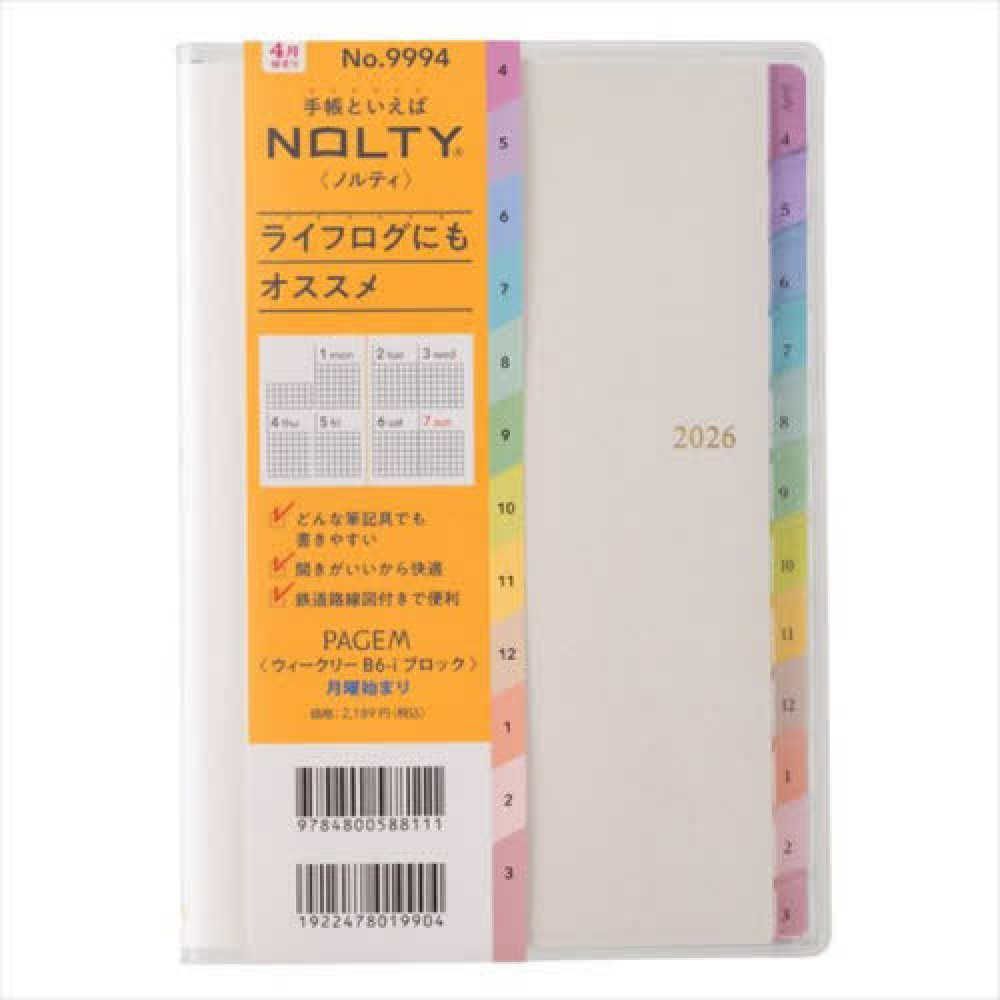 9994 4月始まりペイジェムウィークリーB6-iブロック月曜(ホワイト)