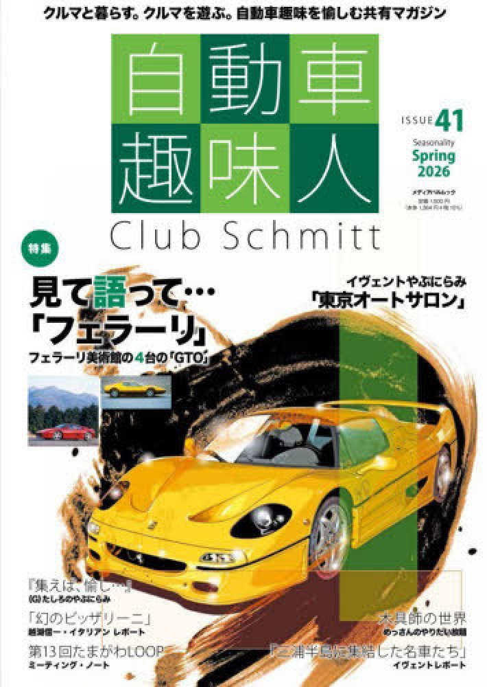 クルマ好きがクルマ好きのために送る趣味誌。その41号は「フェラーリ」を特集。いまや高嶺の華となってしまったフェラーリだが、なにも自分で手に入れるだけが趣味ではない。ここでは懐かしの「フェラーリ美術館」の話題や、クルマ好きが興味を持っているフェラーリ各車を採り上げて、紹介しトークを繰り広げる。ほかにも、新春に開催されたイヴェントやイタリアでつくられようとしている「幻」のニュウモデルなど、幅広いテーマで充実の誌面をお届けします。