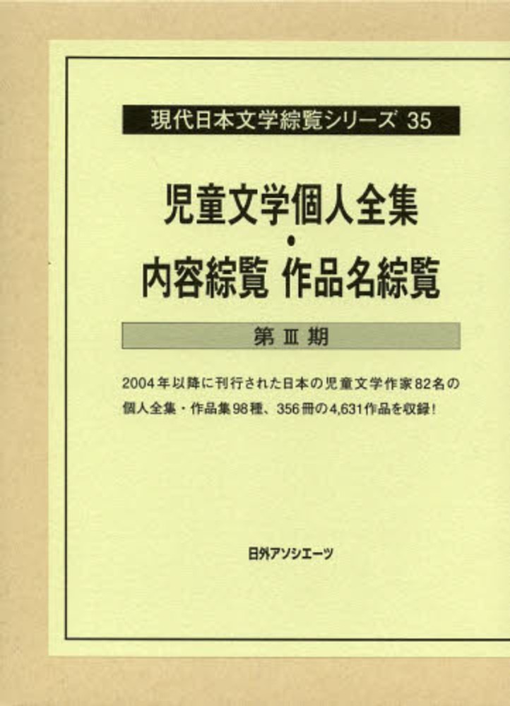 2004年以降に刊行された日本の児童文学作家82名の個人全集・作品集98種、356冊の4,631作品を収録。