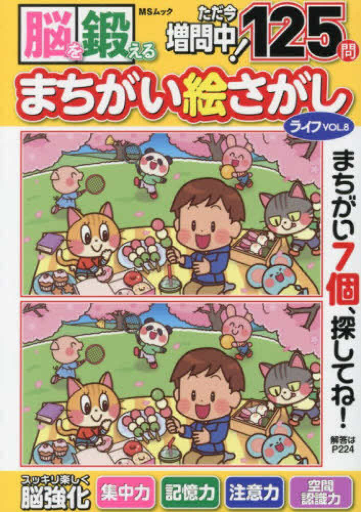 いつでもどこでも楽しめるポケットサイズのまちがい絵さがしです。ハンディサイズのまちがいさがしとしてはトップクラスの125問、たっぷりとお楽しみください。かわいいイラスト満載です!【目次】