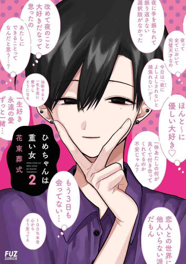 アプリで #読了。花宮姫乃(大2・女が好きな女)はメンヘラの自覚がある重い女。大好きな恋人・夜(大2・♀)に嫌われてはいないかと、同じくメンヘラの後輩、はじめくん(大1・男が好きな男・姫乃以外に友達いない)と反省会をしたりお互いのあるあるを愚痴ったり、気持ちの重そうな彼氏を持つ友人のなっちゃん(光属性)に相談したり。恋人の夜はそんな姫乃を太陽のように包み込んでくれるけど、姫乃は夜の重荷にならないよう、自重できる重い女を目指してます。気持ちは重いが押しつけないようにしてる姫乃は常識ある重い女(強火恋人担)。2025/02/24