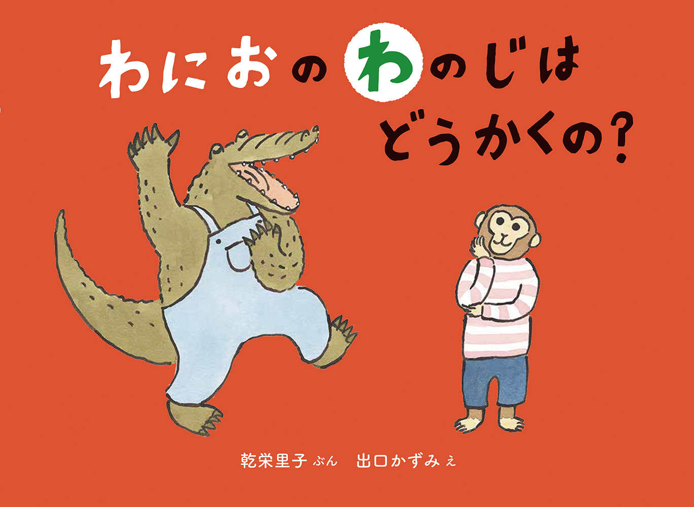 ある日、さるのすけは自分の名前をひらがなで書いて、わにおに見せにいきました。すると、わにおも自分の名前を書いてほしいとさるのすけに頼みます。でも、まだ自分の名前しか書けないさるのすけは、わにおと一緒に町にひらがなを探しにいくことにしました。看板を見ながら、文字を探します。最後には、わたあめの「わ」、肉まんの「に」、おにぎりの「お」と全部見つけて、大満足! ひらがなを書く楽しさと嬉しさが詰まった1冊です。