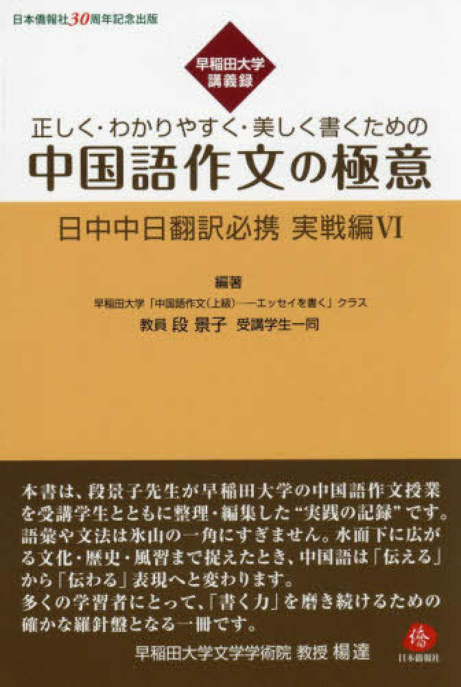 本書は、早稲田大学「中国語作文(上級)―エッセイを書く」の講義をもとに編まれた実践的テキストである。母語ではない中国語で思考し、表現し、「伝わる」中国語文章を書くという挑戦―そのプロセスを丁寧に導いていく。「ステップアップの知識編」では、いま若者の間で使われている生きた中国語や、若者の視点から見た中日文化の違いも紹介する。言葉の壁を越え、中国語で「自分の考えを書く」力を育てる一冊である。