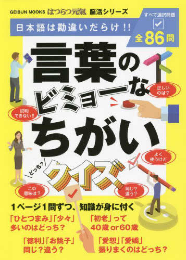 人に自慢したくなる知識、全86問を楽しく学べるクイズ! 日常的な言葉なのに勘違いしやすい言葉を、選択式クイズを解きながら楽しく勉強できます。新しい知識を吸収して脳を柔らかく。