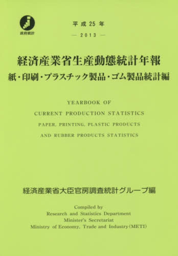 1 紙・パルプ統計(生産・出荷・在庫統計;原材料統計;労務統計;生産能力統計)2 印刷統計3 プラスチック製品統計4 ゴム製品統計