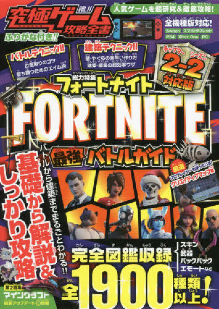 バトルから建築までまるごとわかる!!基礎から解説&しっかり攻略。完全図鑑収録。スキン、武器、バックパック、エモートなど、1900種類以上!