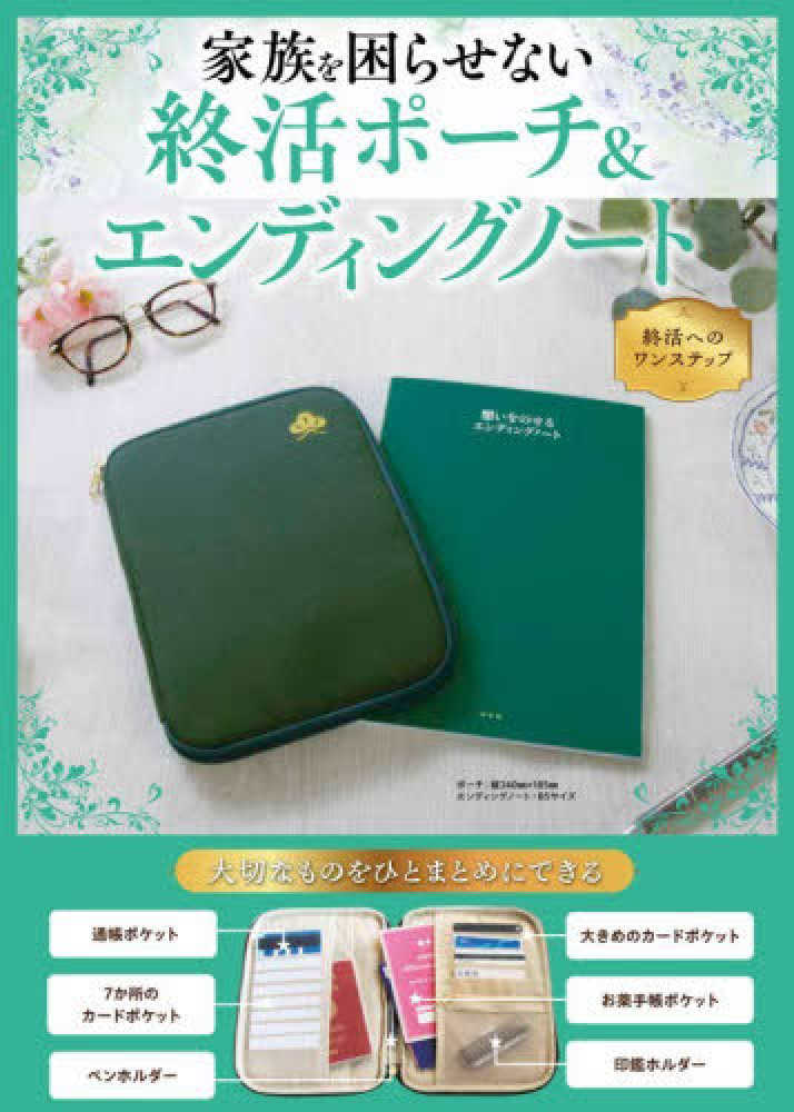 初めて終活に取り組む方が「気軽に」「前向きに」始められるように設計した専用ポーチとエンディングノートのセットです。ポーチは、大切な書類やカード類を一つにまとめられる高収納設計に、健康長寿を象徴する緑と松のデザインを採用。開運要素を取り入れ、心身ともに前向きな終活をサポートします。エンディングノートは、何を書けばよいか分からない・書くのが難しいといった心理的ハードルを下げるため、選択・チェック形式を中心に構成。日々の生活の合間に少しずつ書き進められるよう工夫しています。