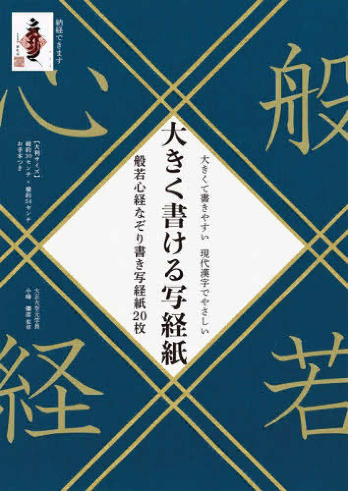 従来の写経紙に比べて約120%大きい、大サイズ(縦約30cm×横約54cm)の大きく書ける写経紙20枚が付録です。カバー裏には般若心経お手本つきです。現代漢字をなぞり書きするだけなので初心者にも安心です。Webで写経の手引きや作法、般若心経解説なども連動しており充実したコンテンツを利用できます。