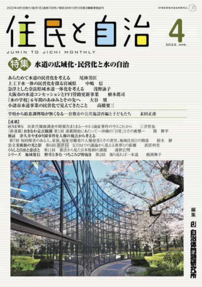 住民と自治 〈2022年4月号〉 特集:水道の広域化・民営化と水の自治