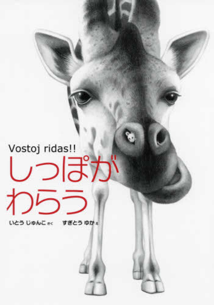 ことばの違いによる民族間のいさかいをなくし、人々が自由で、平等で、平和な社会に生きられるようにと、1887年にポーランドの眼科医ザメンホフ博士が発表したのが、やさしくて誰にも学びやすい国際語エスペラントです。現在世界には百数十か国に百万人の話し手、エスぺランチストがいて、言語の障害を越え、インターネットで、また世界大会やアジア大会など様々な催しのなかで、ザメンホフ博士の理想の実現を目指して交流を続けています。『しっぽがわらう』はエスペラント語との対訳になっていますが、それは、この本が日本人の間だけでなく世界の人々の間で読まれ、その笑いが平和につながっていくようにと祈っているからです。擬音と、動物の顔としっぽだけ。シンプルだから、0歳から繰り返し楽しめます。