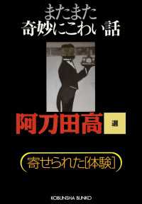 中学校から帰るなり娘はいきなり弁当箱を差し出した。半泣きである。玉子焼きに毛が一杯入っていたという。よく見ると、巻き込んで焼いた内側にみっちり短い毛が! 母親は、同じパックに一つだけ残っていた卵を調べてみるのだが……(最優秀作)。大好評の「寄せられた体験」シリーズ。なかでも、再開を強く待ちのぞまれていた「奇妙にこわい話」。傑作揃い。待望の刊行!