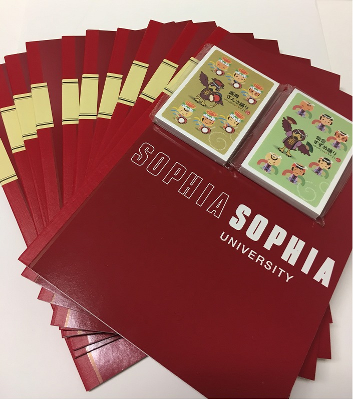学生さんのアイディアから生まれた復刻版のソフィアノート(B5版)です。レトロなデザインながら上質な手触り。 ノート10冊パックに、上智大学公式マスコットキャラクター「ソフィアンくん」の『東北の祭り オリジナルメモ帳』を2つおつけします。(柄はランダムです) 【拡大画像】