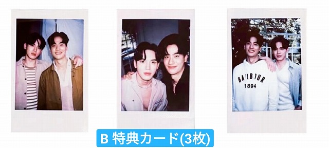 タイプ毎に異なるチェキ風ブロマイドカード3枚が特典として付きます。