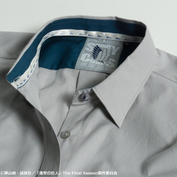 右裾に『SURVEY CORPS 調査兵団』の織ネームを付け、ボトムイン/アウトの着こなしが楽しめます。