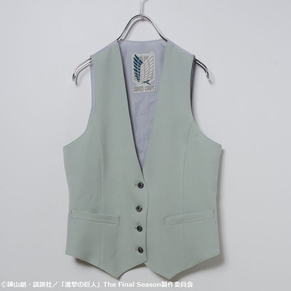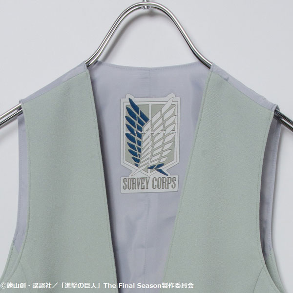 背に調査兵団の大ネームと、ボタンは自由の翼の刻印釦を取り入れています。